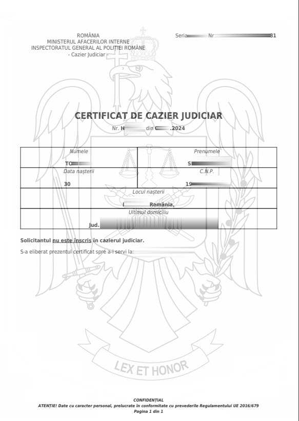 Vă scăpăm noi de aceste bătăi de cap pentru doar 99 RON și vă livrăm certificatul judiciar original în format fizic.